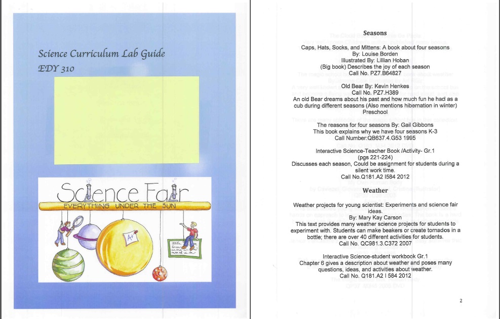 Do you need to create a curriculum lab guide for your class and have no idea where to start? Here is an example of what students in prior EDY310 classes have done.